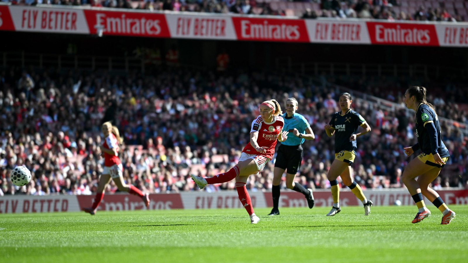 Kelly struck a fierce drive into the bottom corner to make it three and capitalised on a loose ball in the West Ham box to score the fourth, before Beth Mead completed a lovely one-two with Smilla Holmberg and curled home the fifth.