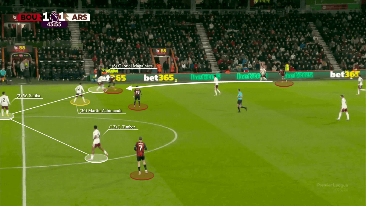 From a less settled situation away to Bournemouth — a 3-2 win over another vertical attacking side — Arsenal managed one transition exceptionally.