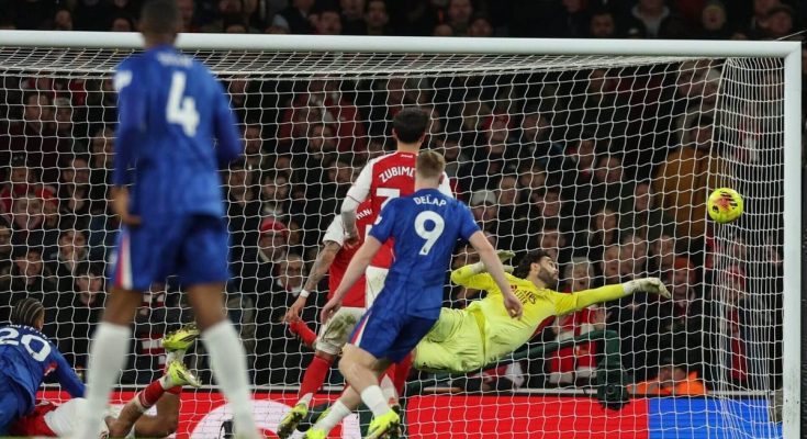 The feverish energy of the match seldom let up. Raya had quite a bit to deal with. He had to rescue his compatriot when Martin Zubimendi rashly passed to him despite the conspicuous presence of Pedro in the way. Then there was a reaction flick when a Chelsea corner deflected off Rice’s upper arm, prompting a VAR check. In punching away a high ball he also caught Pedro, which was cleared by the officials. There was very little peace for either team during the 96 minutes of play.